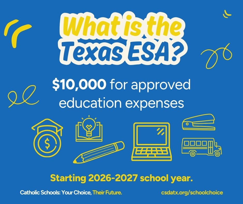 The Texas Education Freedom Accounts Program empowers parents, the primary educators of their children, to choose the learning environment that best supports their child’s growth in faith and academics. Click the link to discover how your family may benefit from this opportunity. https://csdatx.org/schoolchoice-1